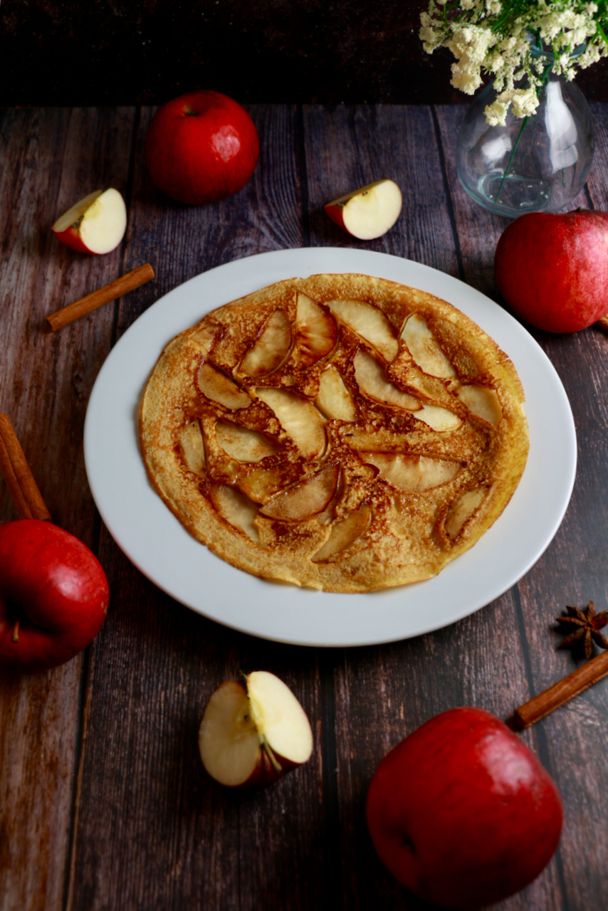 Apfelpalatschinken, eine süße österreichische Variante des klassischen Pfannkuchens, angereichert mit frischen Äpfeln und einer Prise Zimt. Perfekt für ein gemütliches Frühstück.