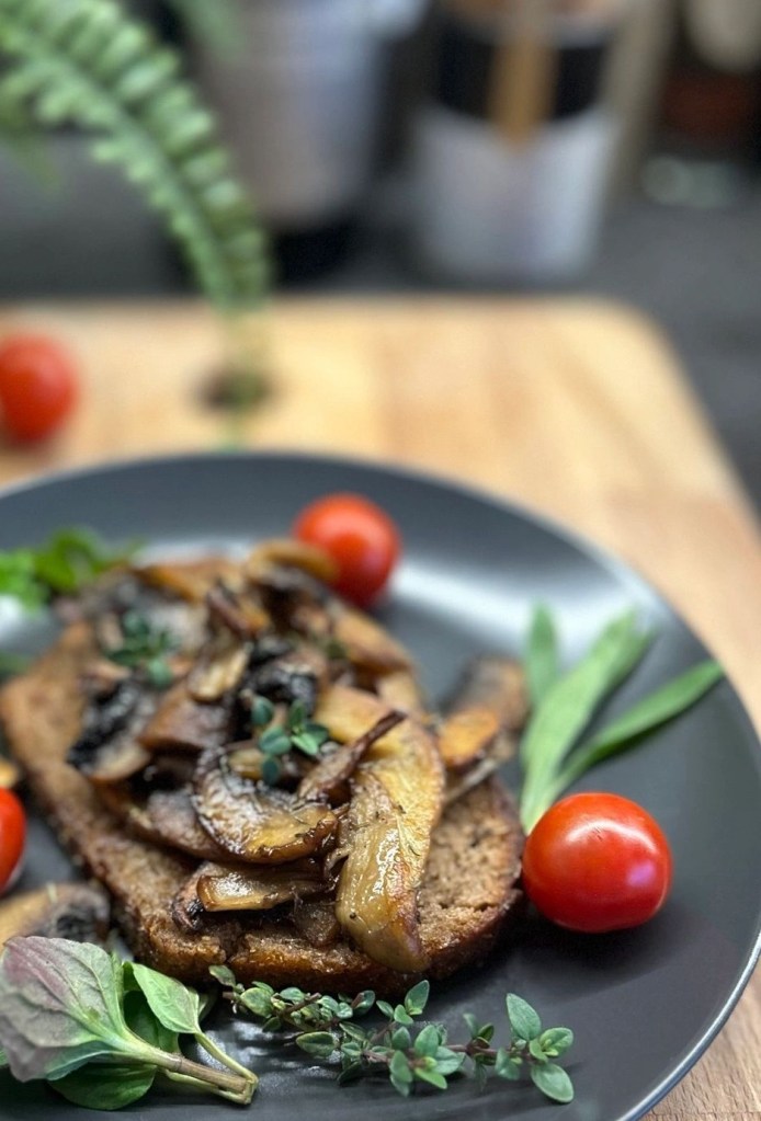 Man nehme ein paar wenige gute Basiszutaten wie aromatische Pilze, gutes Sauerteigbrot (Sniif!), kalt gepresstes Olivenöl, Thymian und Salz.