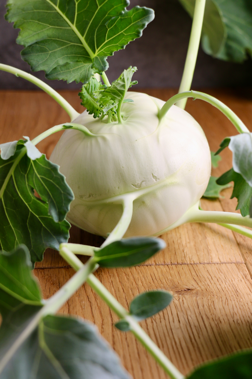 Die Blätter müsst ihr übrigens nicht wegwerfen. Kohlrabiblätter haben gegenüber der Knolle einen rund doppelt so hohen Gehalt an Vitamin C, der Gehalt an Carotin beträgt das 100fache, der an Calcium und Eisen das 10fache. Grund genug um daraus Kohlrabi-Spinat zu machen.