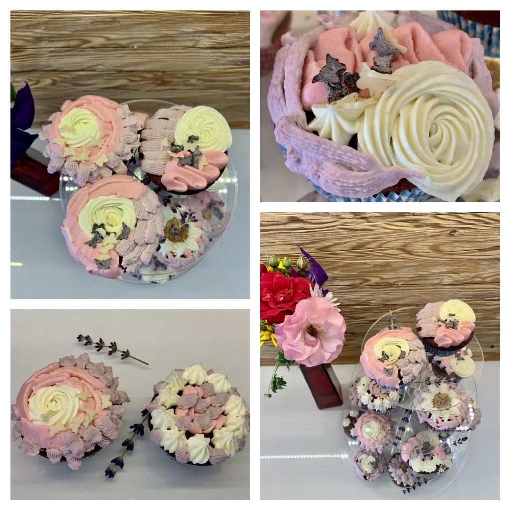 - Mascarpone mit Zucker verrühren. Eventuell etwas Obers dazugeben, falls die Creme zu fest ist. Oder mit Himbeersirup oder Heidelbeersaft einfärben. Auf den Muffins dressieren.