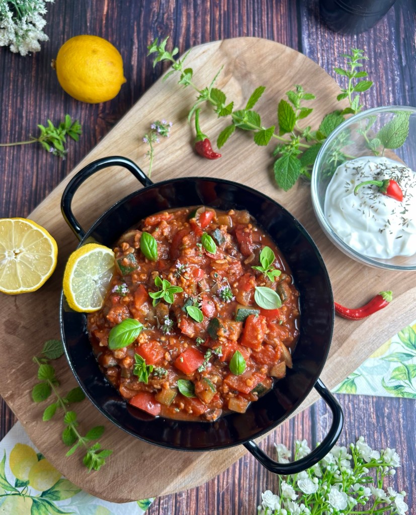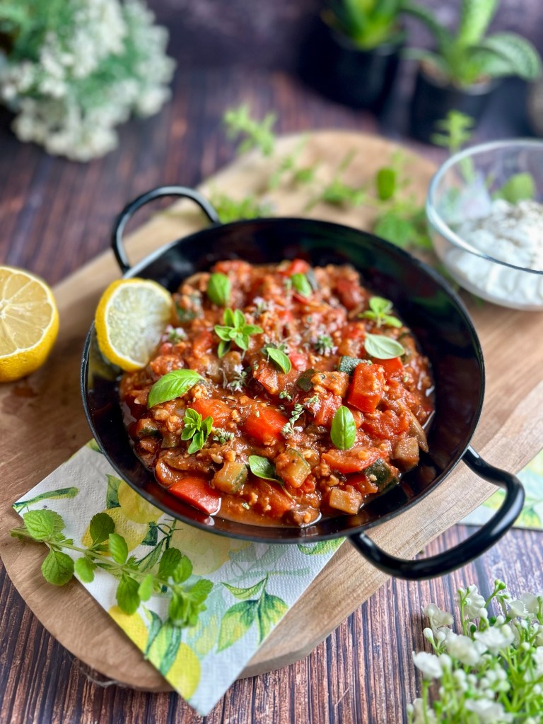 - 1 Tasse gelbe Linsen und/oder Sojageschnetzeltes