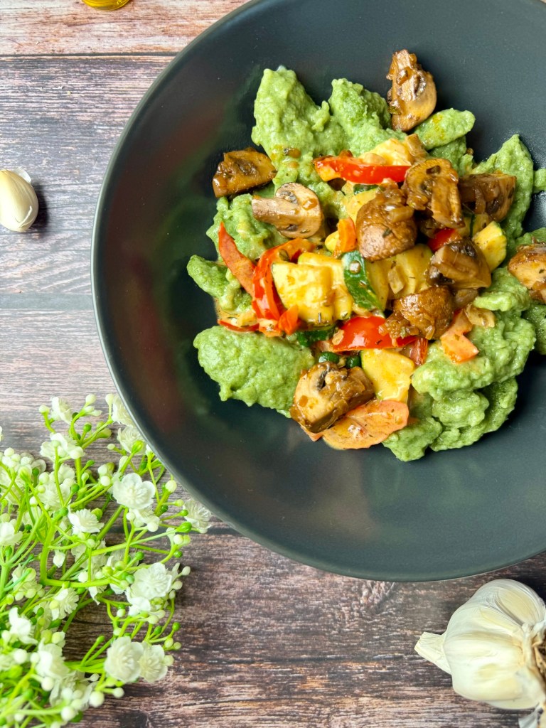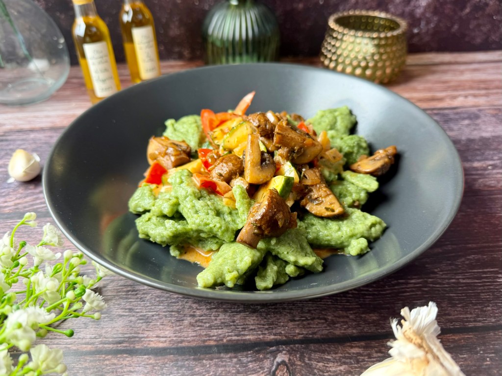 Dieses Rezept bietet eine leckere Kombination aus herzhaftem Gemüse und hausgemachten Nockerln, perfekt für ein gemütliches Abendessen.