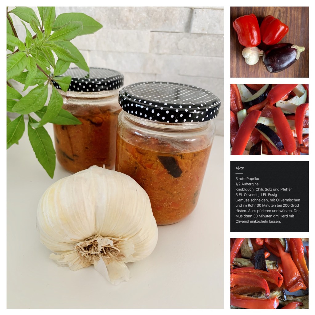 Durch das Rösten der Paprika und Auberginen im Rohr mit Olivenöl bekommt das Ganze ein wunderbares Röst-Aroma und auch eine leichte Süße. Gewürzt wird nur mit Salz, Pfeffer und einen Schuss Essig, der das fruchtige Aroma des gegrillten Paprikas noch unterstreicht. Mehr braucht es nicht. Außer natürlich Knoblauch, der in kroatischen Gerichten sowieso nie fehlen darf. Wir lassen das übliche Schälen der Paprika weg und pürieren alles nur grob und rustikal mit dem Stabmixer. Das geht schnell und schmeckt uns genau so gut. Nach dem Mixen kommt die Sauce in einen Topf mit Olivenöl und darf leise dahinköcheln, bis die gewünschte Konsistenz erreicht ist. In Gläser abfüllen und im Kühlschrank aufbewahren.