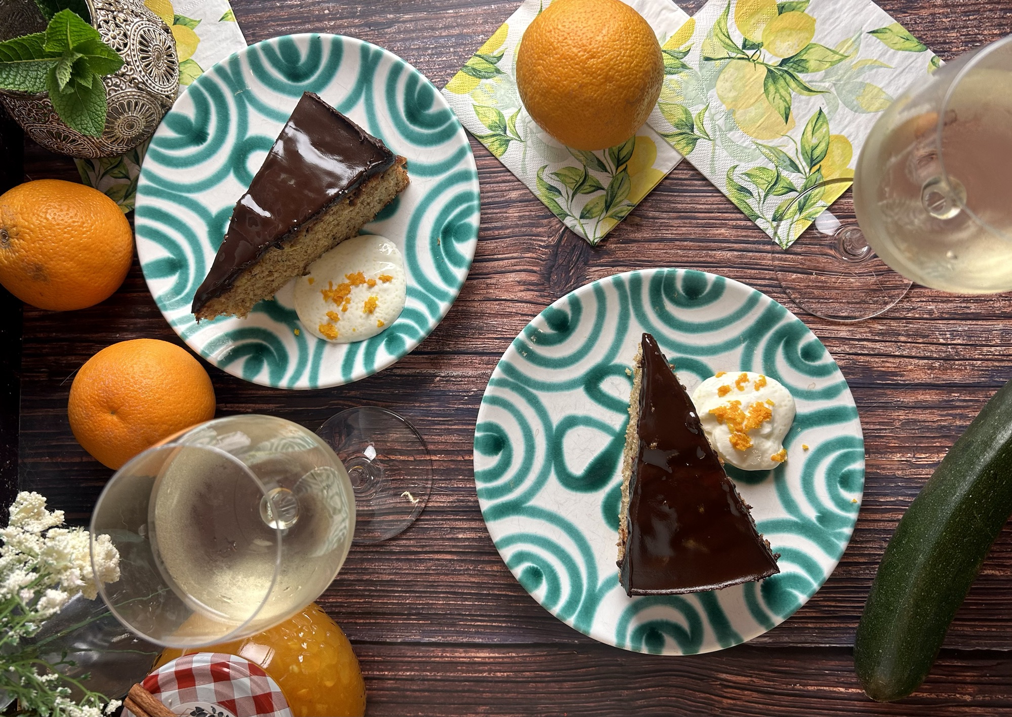 Zucchini-Kuchen mit Schokoladenglasur und Orangenzauber