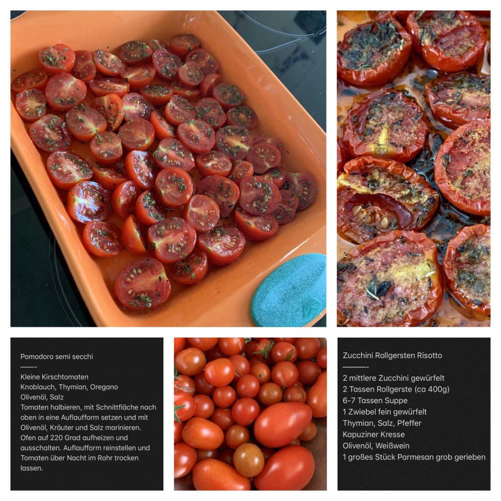 Dazu gibt es halbgetrocknete Mini-Tomaten. Pomodoro semi secchi. Himmlisch!