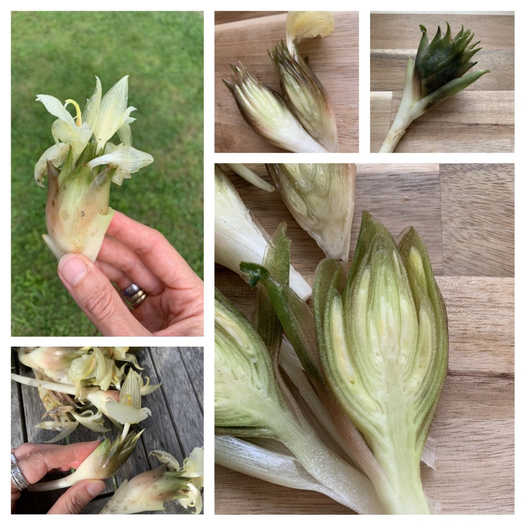 Das, was wir da ausgegraben haben und ihr hier auf den Fotos vom Myoga seht, sind nicht die Wurzeln der Pflanze, sondern das sind die Blüten.
