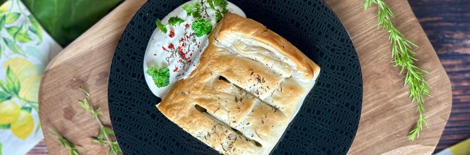 Krautstrudel: Herzhaftes Gericht im Herbst, serviert mit Kräuter-Rahm