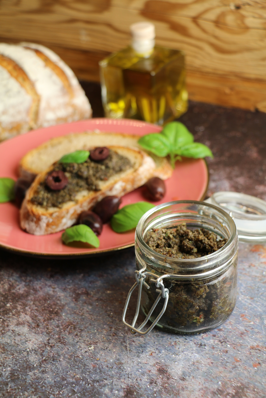 Unser schwarzes Pesto schmeckt nicht nur zu Nudeln, sondern auch zu unserem selbstgemachten Kartoffelbrot. Durch die Oliven und den Pecorino ist das Pesto an Umami kaum zu überbieten.