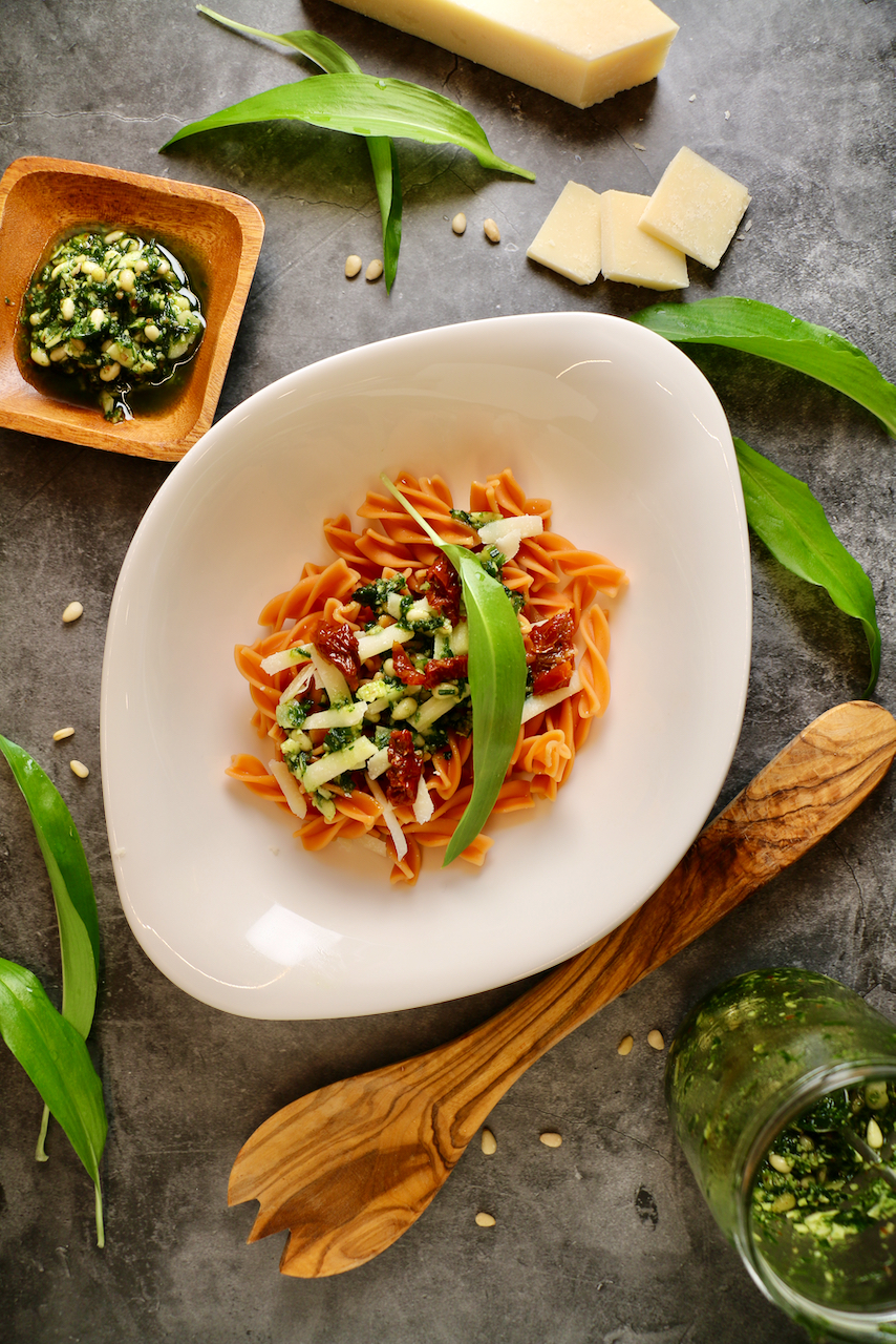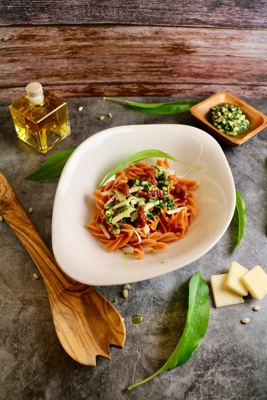 Rote Linsen-Nudeln mit Bärlauch-Pesto
