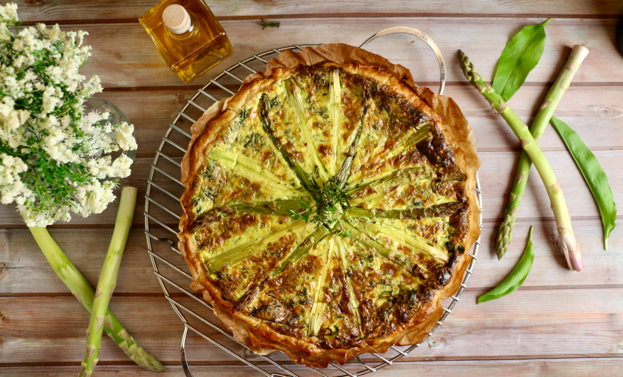Frühlings-Quiche mit Mangold, Spargel und Bärlauch