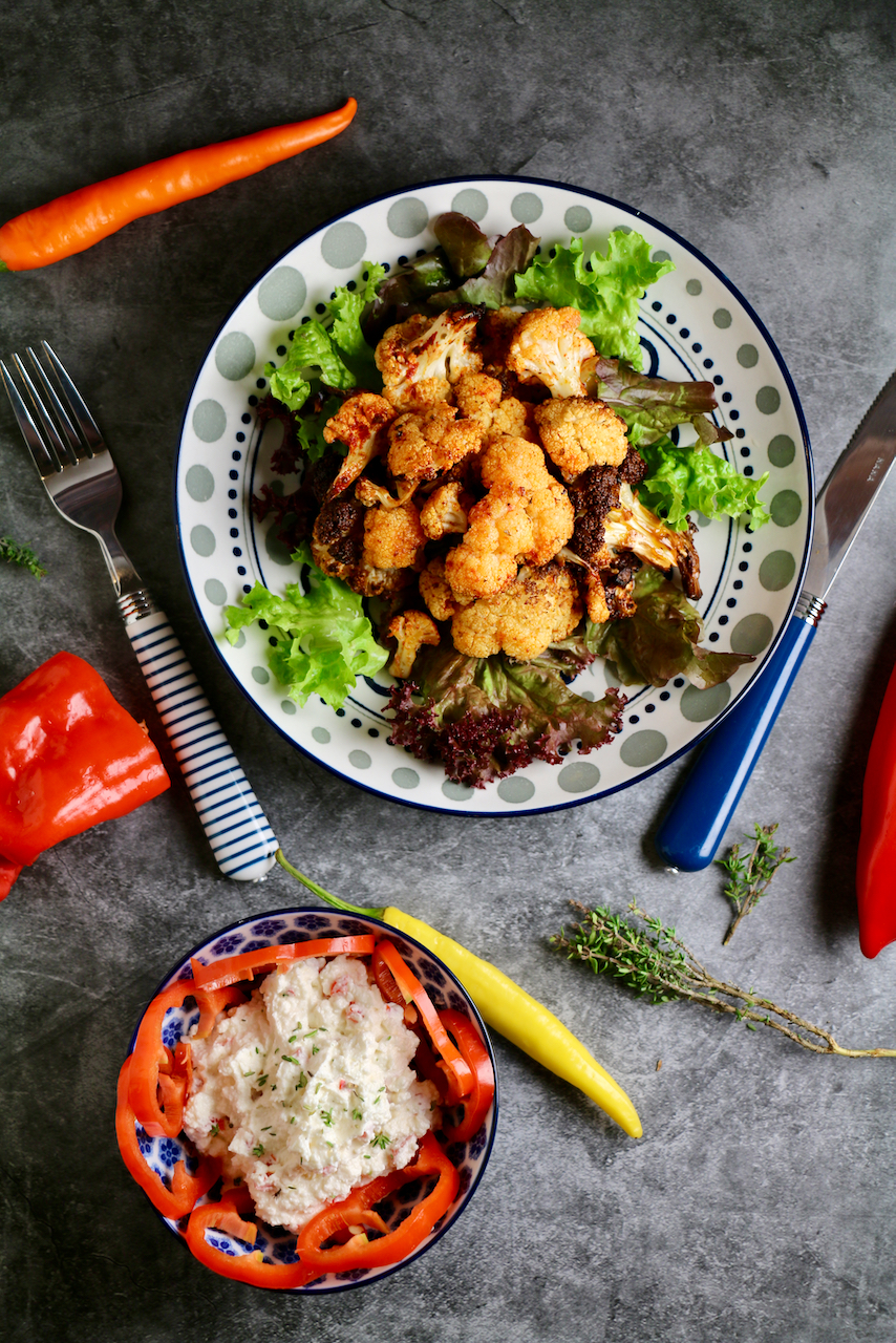 Knuspriger Karfiol mit Chili-Feta-Creme