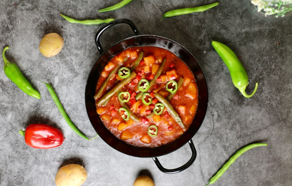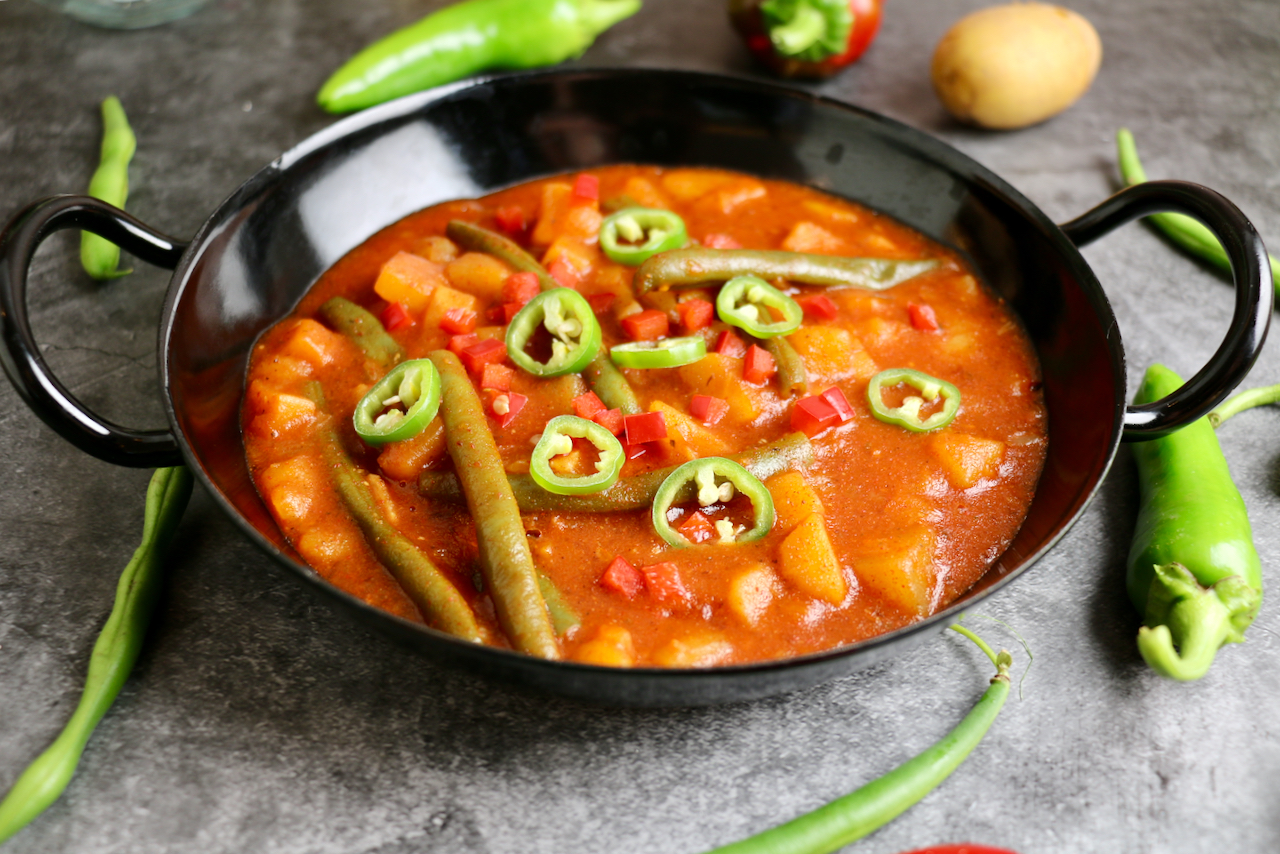- Dann die grünen Bohnen dazugeben und auf kleiner Stufe weiterkochen, bis auch sie weich sind. Das Gulasch sollte nun dick cremig sein, ansonsten noch etwas köcheln lassen bis die Kartoffeln fast ganz zerfallen. Die Bohnen sollten aber noch etwas bissfest sein.
