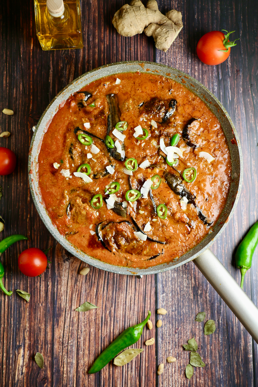 Auberginen in Tomaten-Kokosmilch-Sauce
