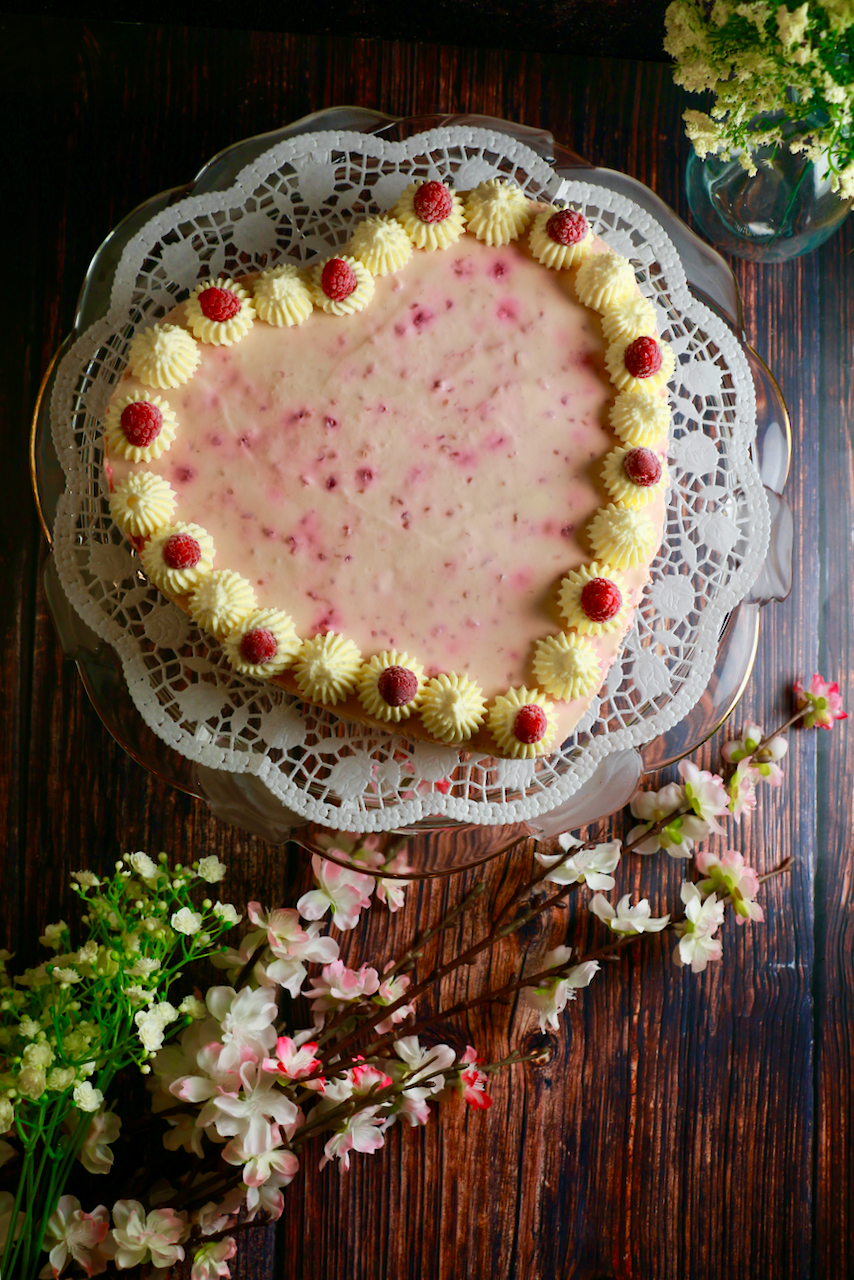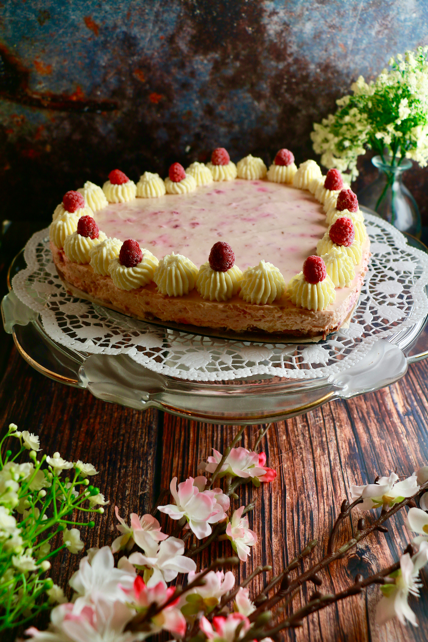 Einfache und süße Himbeer-Torte mit Topfen und Keksboden. Perfekt zum Valentinstag.