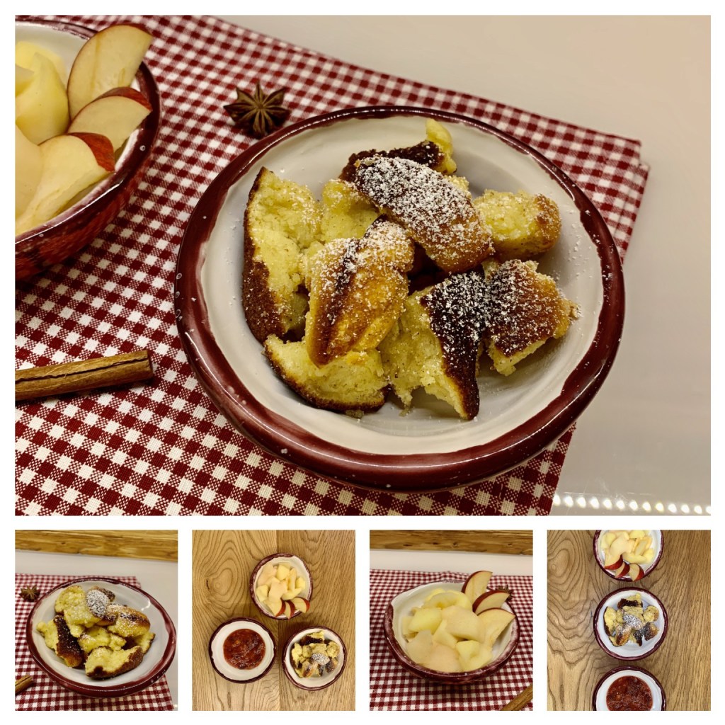 Zum anderen schmeckt der Kaiserschmarrn auf den Schihütten deshalb so gut, weil nach einigen Stunden Schifahren in eisiger Kälte etwas Warmes mit viel Butter und Zucker genau das Richtige ist, was unser Körper braucht. Deshalb unser Tipp: lasst eure Gäste eine Runde an der frischen Luft spazieren gehen, bevor ihr ihnen den Kaiserschmarrn serviert. (Das atemberaubende Bergpanorama werdet ihr vermutlich daheim nicht hinbekommen, aber mit ein wenig Fantasie gelingt auch das ;).