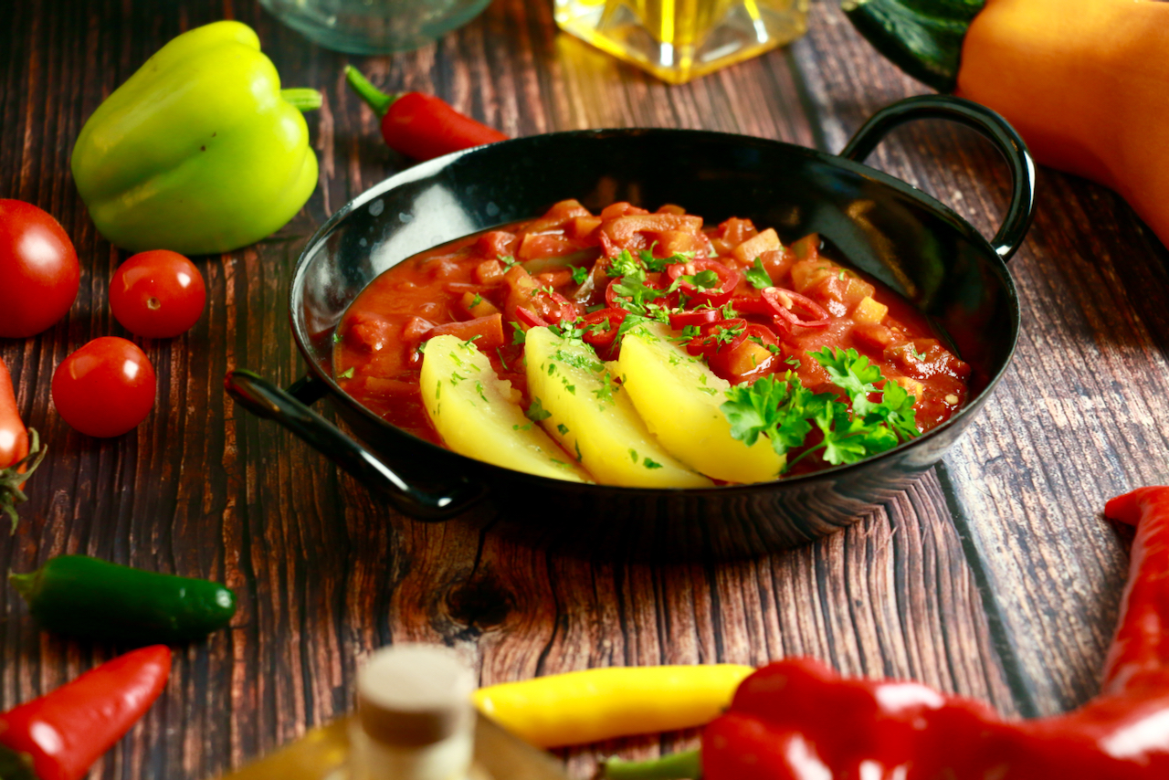 Feuriges Paprikagulasch mit Salz-Kartoffeln