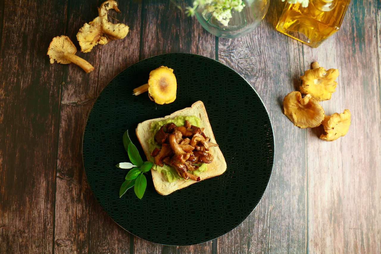 Gebratene Eierschwammerl auf Toast mit Avocadocreme