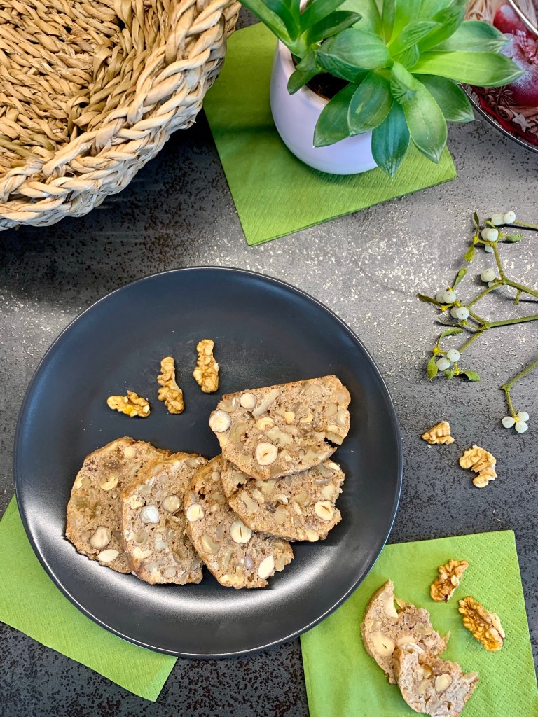 Tipp: Man kann mit verschiedenen Nüssen das Rezept variieren. Mit Walnüssen schmeckt der Zwieback komplett anders als mit Erdnüssen. Wir haben einen Mix aus Walnüssen, Haselnüssen und Cashewnüssen verwendet.