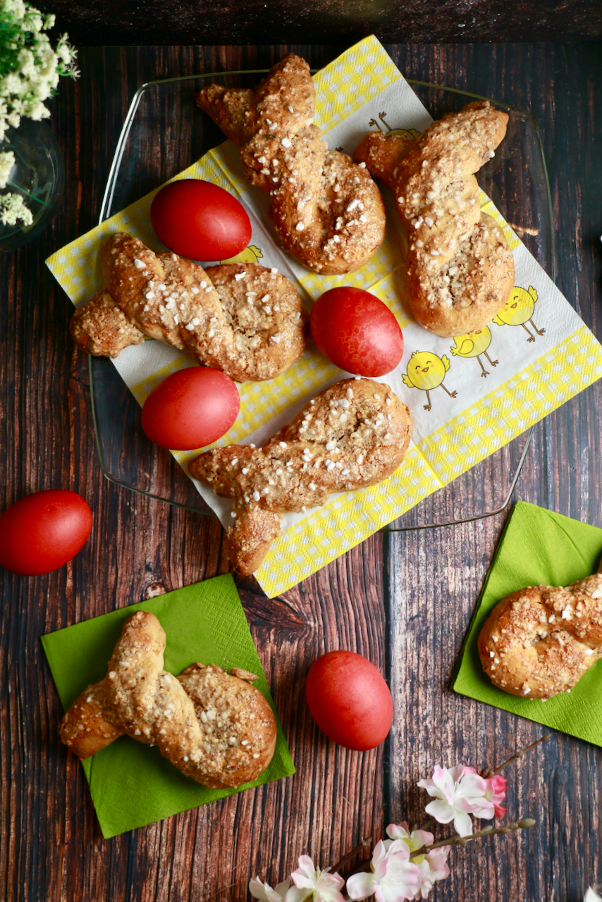 Sehr einfach und unkompliziert, aber dennoch mal etwas anderes: traditionelles Germ-/Hefegebäck, wie der altbewährte Osterstriezel oder die Osterpinzen gibt es jedes Jahr, doch dieses Mal machen wir Osterhasen mit süßem Mandeln-Guss und fruchtigen Orangenstückchen im Teig.