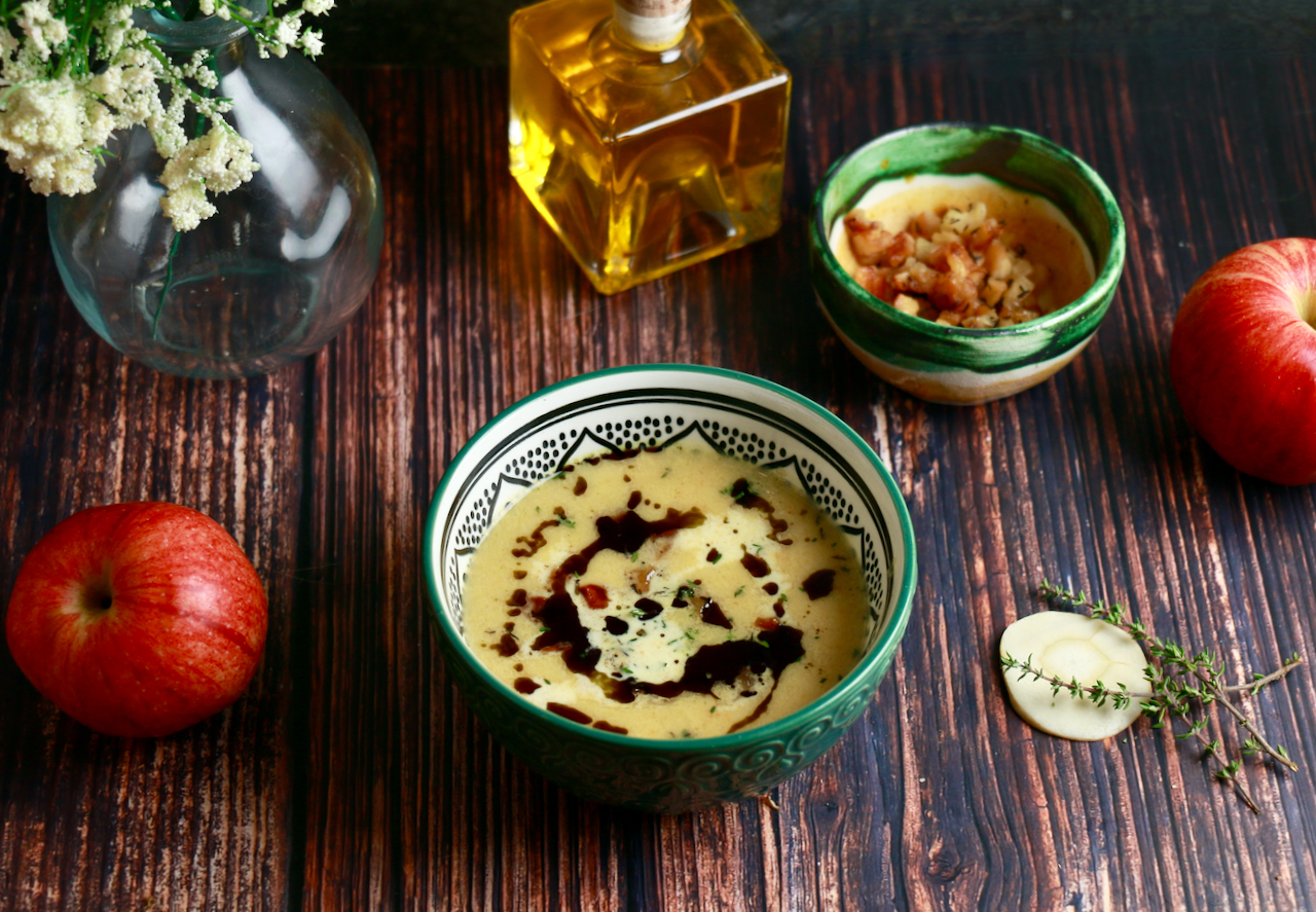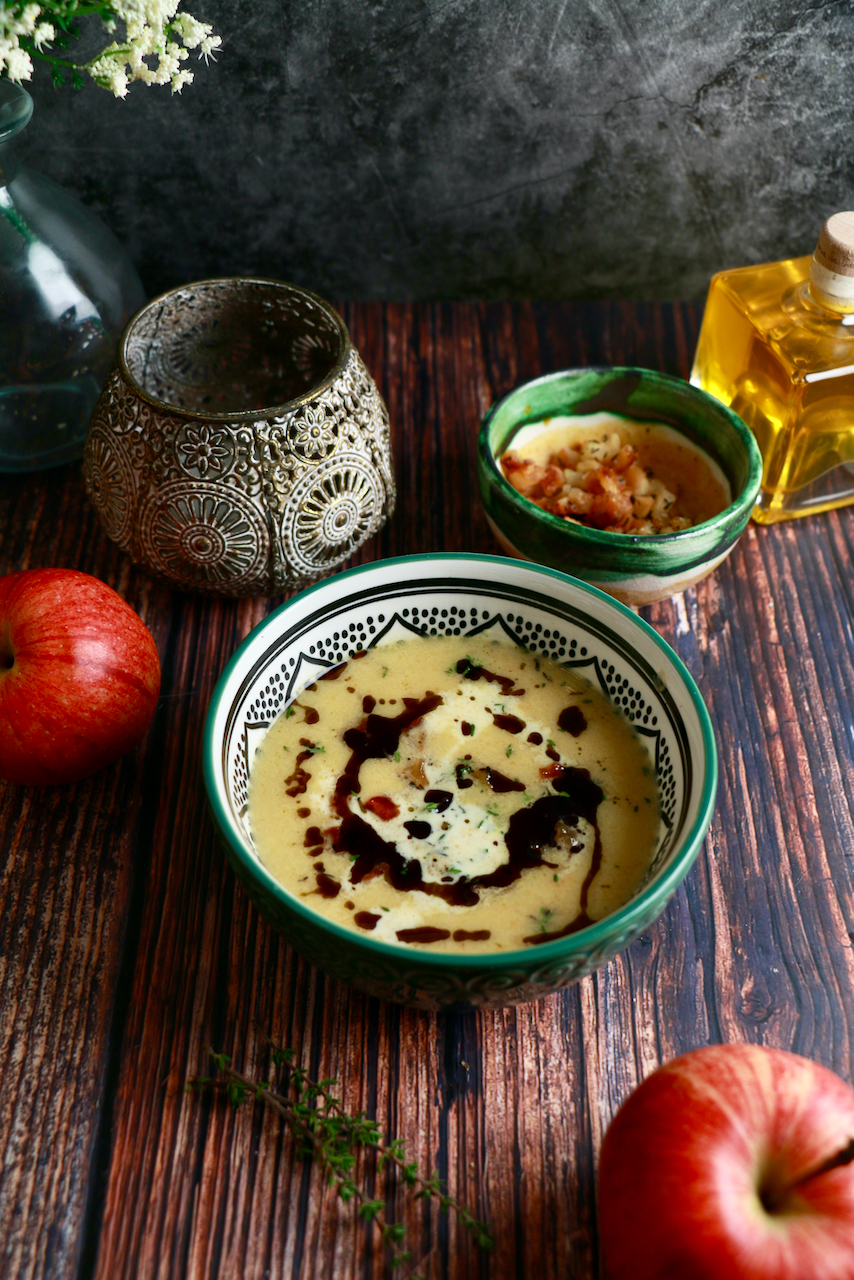 Eine gesunde und wärmende Wintersuppe, mit süßem Apfel und kräftigem Kürbiskernöl