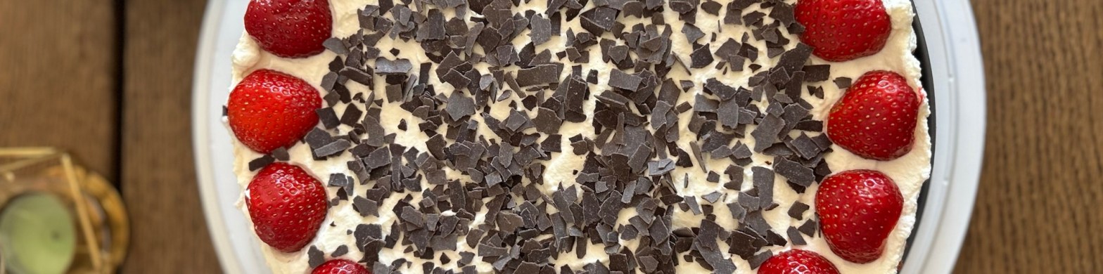Einfache Muttertagstorte mit Schokolade und Erdbeeren
