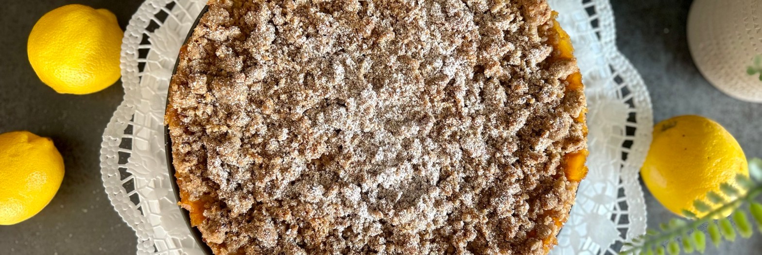 Fruchtige Rhabarber Orangen Tarte mit Nuss-Streuseln