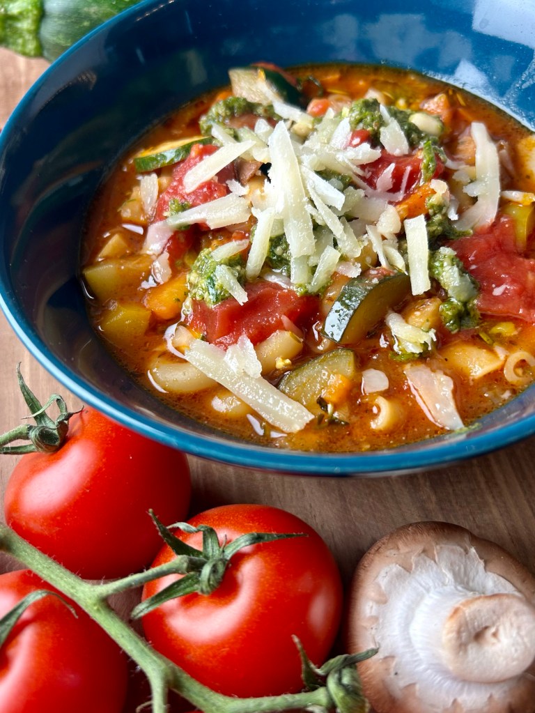 Vegetarische Minestrone mit Pesto und Parmesan