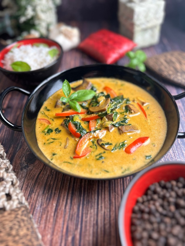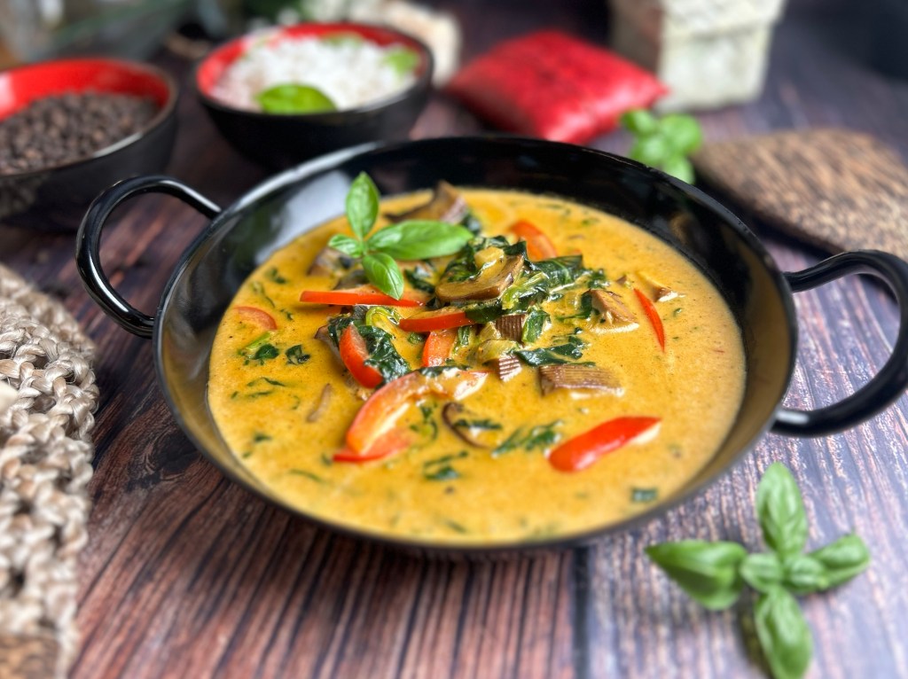 Das Rezept kombiniert die cremige Süße der Kokosmilch und Palmzucker mit der Würze des roten Currypulvers zu einem fantastischen Gericht.