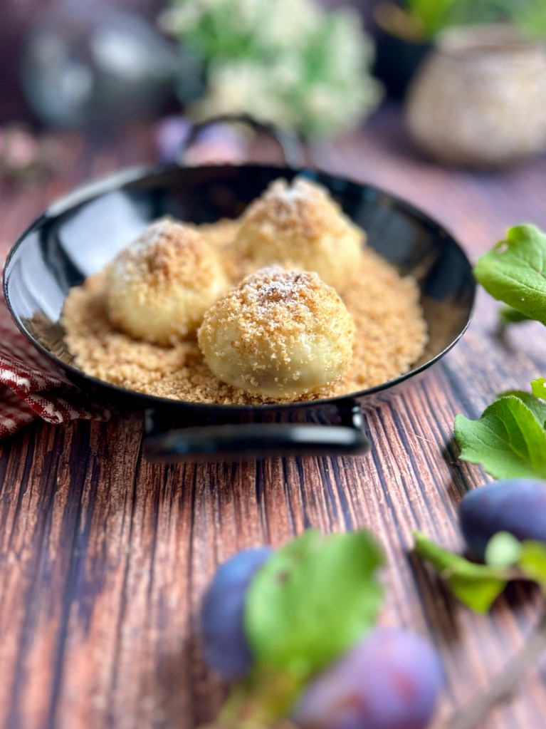 Zwetschkenknödel sind ein klassisches Gericht der österreichischen Küche (darum auch die Schreibung mit k statt Zwetschgenknödel).