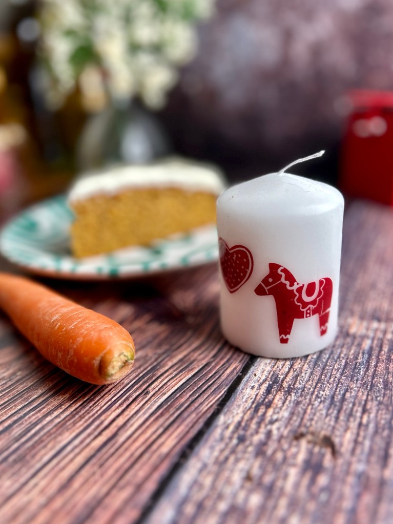 Ein saftiger Karottenkuchen nach schwedischer Art, verfeinert mit einem Hauch Zimt und einer cremigen Frischkäseglasur.