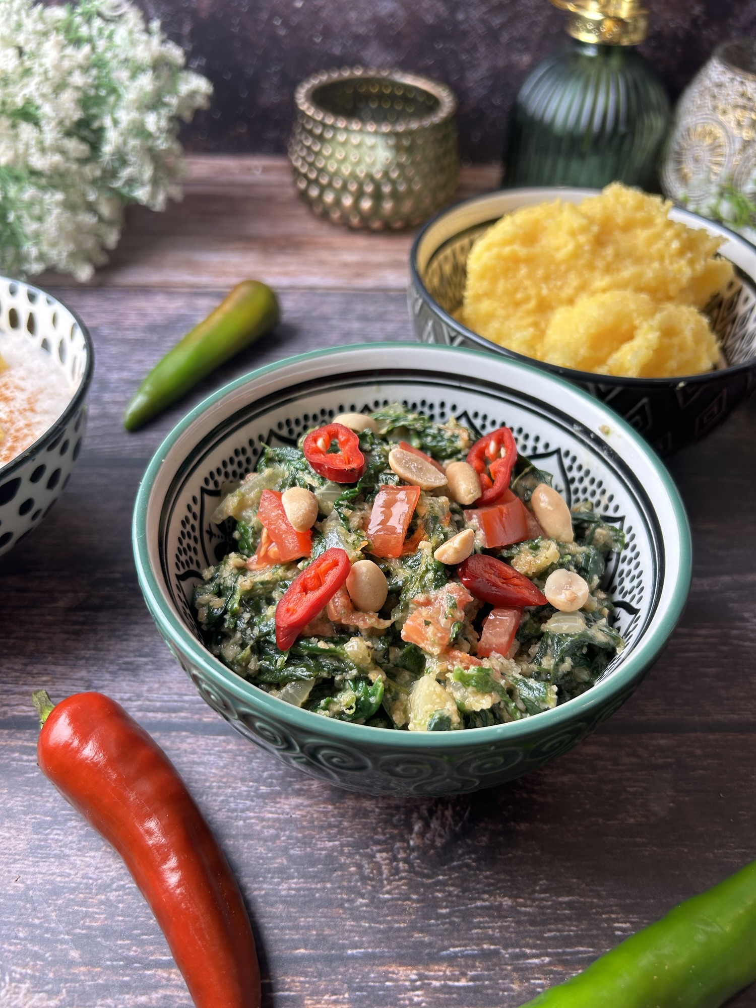 Das Herzstück ist immer gleich: geröstete oder frisch gemahlene Erdnüsse, die mit Wasser oder Brühe zu einer samtigen Sauce verarbeitet werden. Diese cremige Basis verbindet sich mit den grünen Blättern zu einem nahrhaften, veganen Wohlfühlessen, das gleichzeitig leicht und sättigend ist.