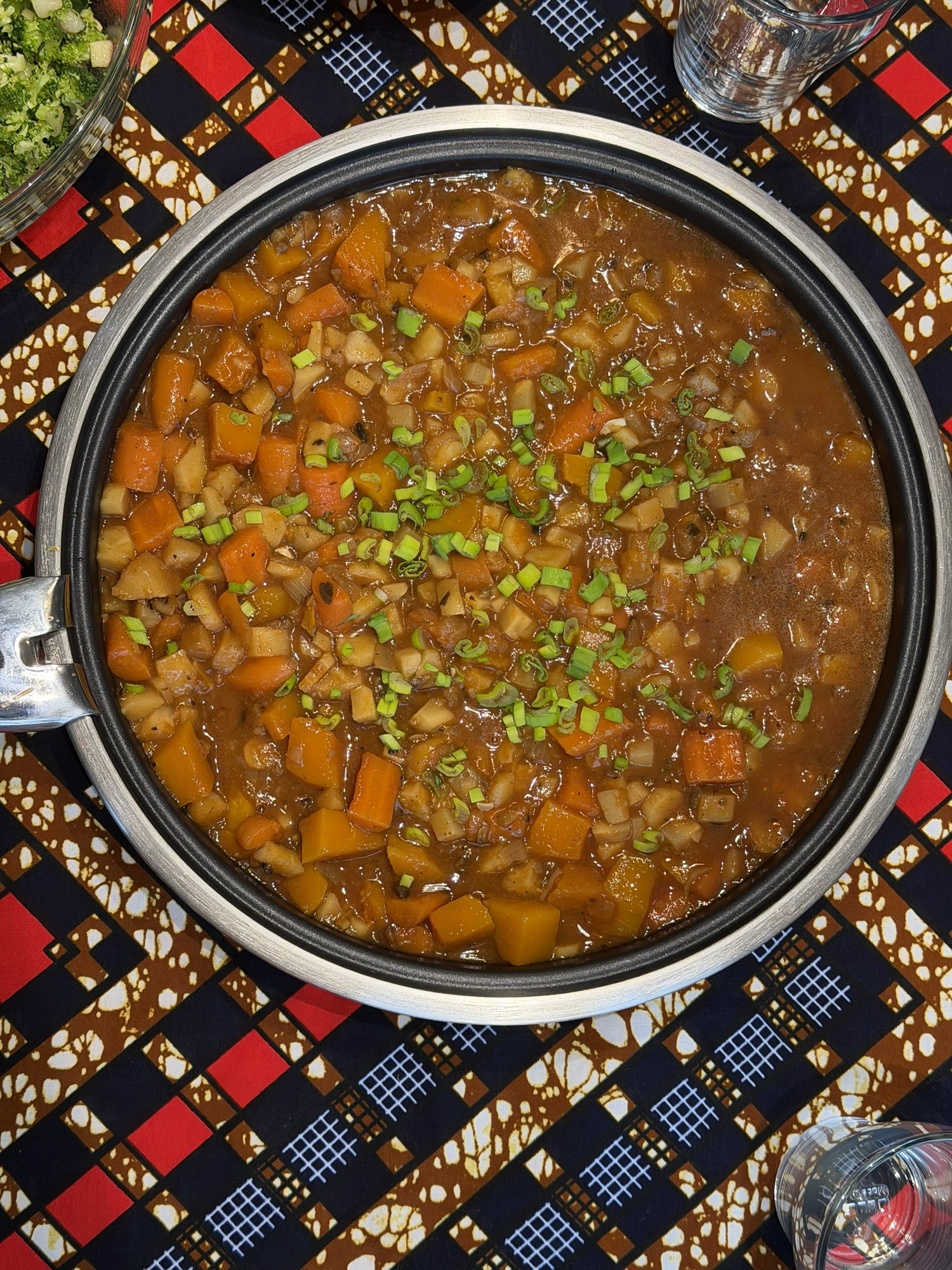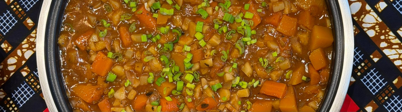 Wir kochen heute ein vegetarisches Stew, das wir häufig in Sambia gegessen haben. Dunkles Bier bringen dabei eine malzige, fast karamellartige Note ins Spiel. Bier ersetzt hier Wein und sorgt für Bitterkeit, Säure und Körper zugleich – ideal für eine vegetarische Küche, die trotzdem kraftvoll sein soll.
