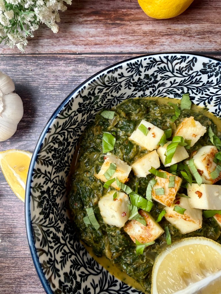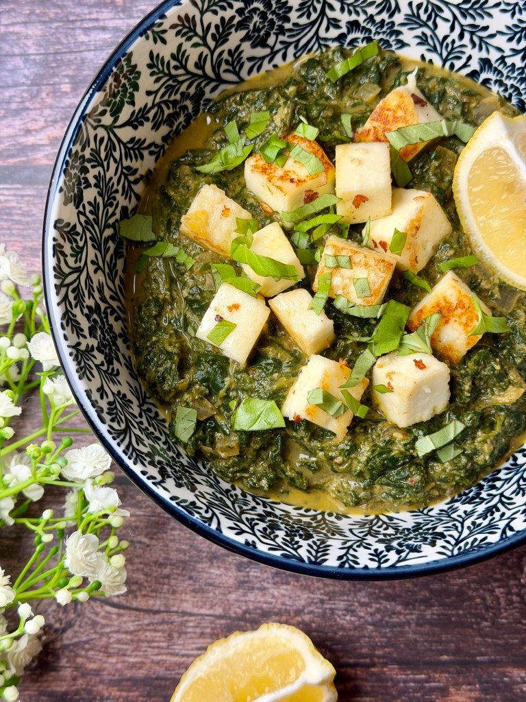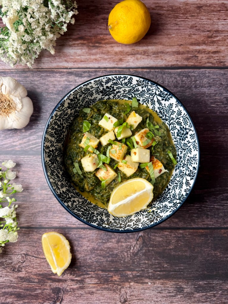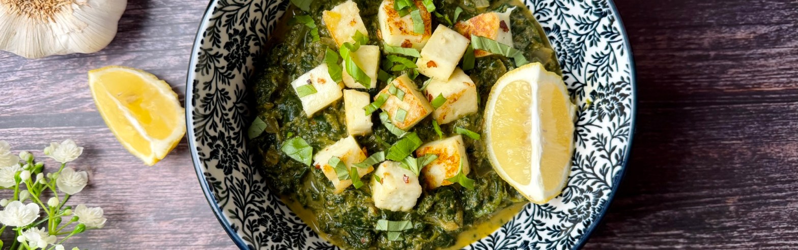 Palak Paneer ist ein klassisches nordindisches Gericht aus Spinat (Palak) und indischem Frischkäse (Paneer). Es gehört zur Alltags- wie auch Festküche und ist eines der bekanntesten vegetarischen Currys Indiens.