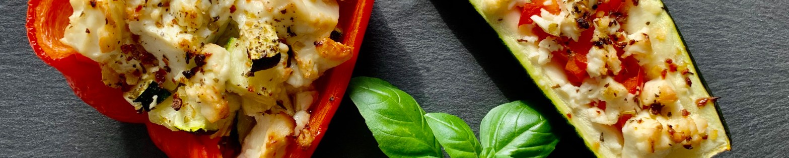 Ajvar ist eine unserer Lieblingssaucen zum Grillen und es passt wunderbar zu überbackenen Gemüse. Zum Beispiel zu gegrillten Paprika und Zucchinischiffchen. Schnell zubereitet, gesund und lecker – das perfekte Abendessen. Für die gefüllten Paprika und Zucchini beide Gemüsesorten halbieren und aushöhlen. Das Innere der Zucchini würfeln und mit Öl und unserem selbst gemachten mediterranen Kräutersalz„Gegrillte Paprika mit Feta und Ajvar“ weiterlesen