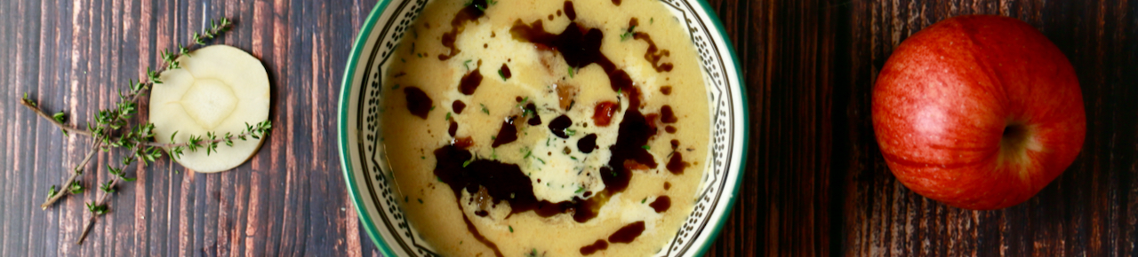 Pastinaken-Suppe mit Kürbiskernöl und glasierten Äpfeln