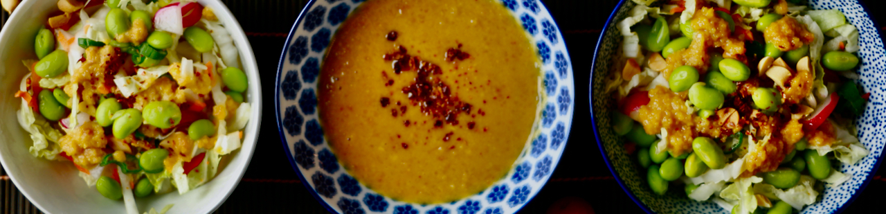 Thailändischer Salat mit Sojabohnen und Erdnuss-Dressing
