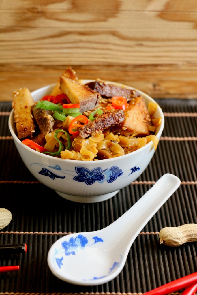 Spicy Erdnuss Ramen Suppe – cremig, aromatisch, wärmend. Ramen stammen ursprünglich aus Japan, wurden jedoch über Jahrzehnte von vielen anderen Küchen beeinflusst – vor allem der südostasiatischen. Die Idee, Ramen mit Kokosmilch und Erdnuss zu verfeinern, ist typisch für die moderne Streetfood-Szene.